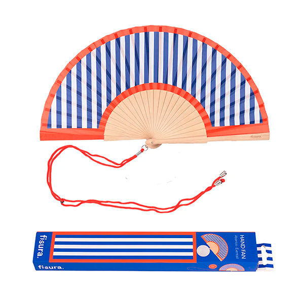 El Abanico Rayas Rojo y Azul de Fisura es el accesorio imprescindible del verano: sostenible, práctico y con ese toque náutico que combina con todos tus planes al sol. ⚓