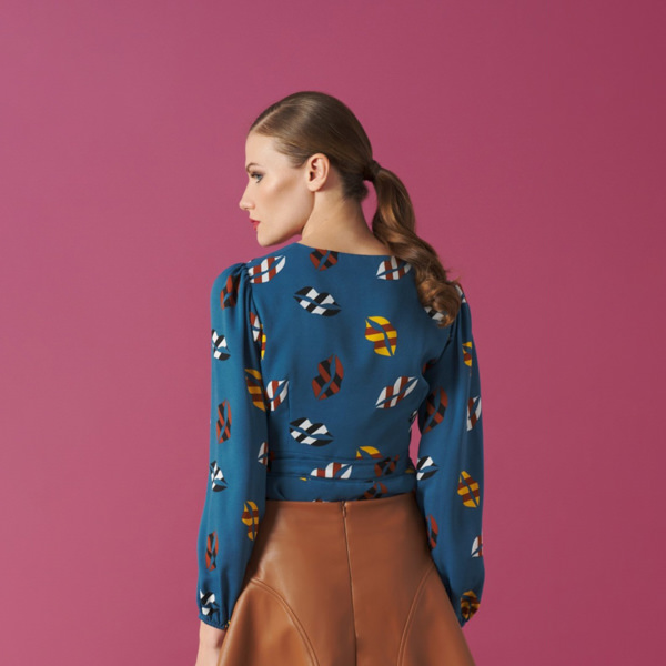 El top Andy, con escote en pico y manga larga. Con detallazo de fruncido en el delantero, cierre con cremallera lateral sienta de maravilla. Y su estampado es simplemente FA-BU-LO-SO, unos besos multicolor sobre fondo azul que seguro te gustarán tanto como a nosotras. Además tiene unos frunces en los hombres que son lo must. Está hecho 95% Poliéster, 5% Elastano.