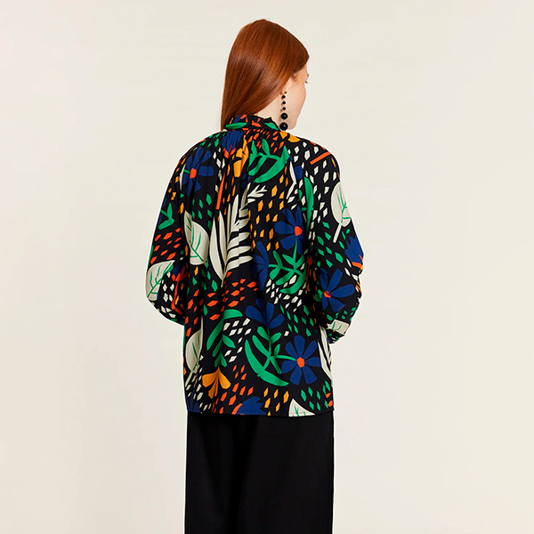 Esta camisa de corte amplio en tejido fluido y con caida es perfecta para combinar con cualquiera de las prendas de la colección de Pepa Loves. Camisa con cierre delantero con botones en la misma tonalidad y cuello mao alto. Manga larga recta con puños cuadrada. Además su estampado nos encanta un bonito estampado floral que animará hasta los días más grises.