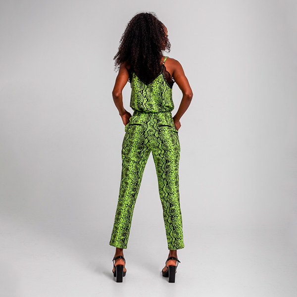 Esta blusa pertenece a la colección Veneno: Porque como dice la canción. Dicen que tienes veneno en la piel. Y como nos gusta a nosotr@s los estampado de Lolina. Blusa tipo lencera de tejido fluido elástico. Con cuello de pico tanto en el delantero como en la parte de atrás. Detalle de encaje en el escote y tirantes ajustables para que resulte más cómoda.