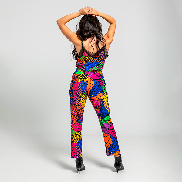 Esta blusa pertenece a la colección Caótica: mi vida es una sinfonía de caos controlado, donde uno encuentra la libertad y la felicidad. Porque si hay caos, libertad y felicidad. Y como nos gusta a nosotr@s los estampado de Lolina. Blusa tipo lencera de tejido fluido elástico. Con cuello de pico tanto en el delantero como en la parte de atrás. Detalle de encaje en el escote y tirantes ajustables para que resulte más cómoda.