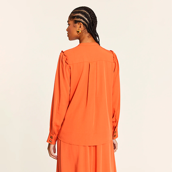 Esta blusa con cuello mao de corte amplio en tejido fluido y con caida es perfecta para combinar con cualquiera de las prendas de la colección de Pepa Loves. Camisa con cierre delantero con botones con forma de corazones, mangas ligeramente abullonadas con fruncidos en el hombro que le dan un toque romántico.