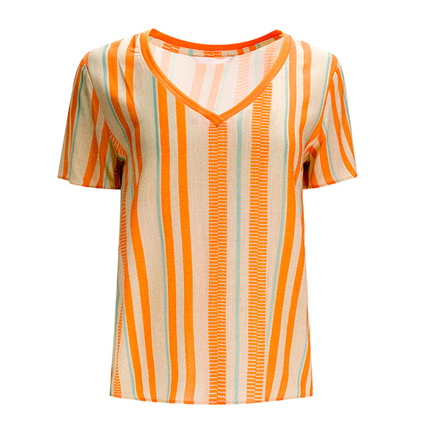 La Blusa Yarn Naranja de escote en pico es espectacular. De manga corta y de holgado esta fabricada en MVS Thirty Plus Mesh, más ligera, de ajuste fluido y de tacto muy suave. Con un estampado que nos recuerda los días de verano, naturaleza en estado puro.