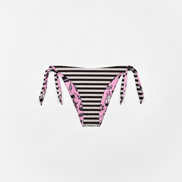 La línea de baño de Lolina es sin duda una de esas novedades que no te quedas perder. Esta Braga de tiro bajo, cintura recta , se anuda al lateral y es perfecta para completar el look con las diferentes tops de la colección. Además un detalle que nos encanta, podrás utilizarlo del derecho y del revés solo tú eliges . Este bañador pertenece a la colección Pirata: porque como dices la canción !La Vida Pirata e la mejor! porque ha llegado el momento de disfrutar, y ahora es tu momento. Y como nos gusta a nosotr@s los estampado de Lolina.