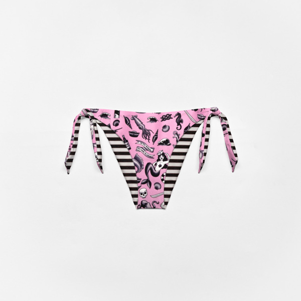 La Braga Bikini Reversible La Vida Pirata de tiro bajo, cintura recta , se anuda al lateral y es perfecta para completar el look con las diferentes tops de la colección. Además un detalle que nos encanta, podrás utilizarlo del derecho y del revés solo tú eliges.