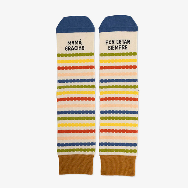Estos calcetines son ese detalle sencillo que lo dice todo: gracias por estar, por cuidar, por querer… siempre. Con un diseño de rayas coloridas y el mensaje tejido “mamá, gracias / por estar siempre”, están pensados para acompañarla en su día a día con comodidad y mucho significado. Porque hay palabras que, cuando se sienten de verdad, merecen llevarse bien cerca.