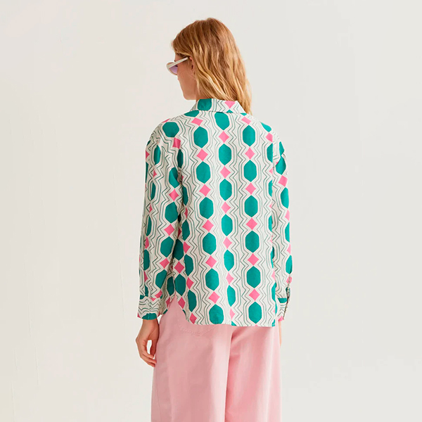 La Camisa estampado Geometric con cuello camisero y manga larga con puño. Cierre delantero con botones. De corte holgado esta fabricada en un tejido fluido.