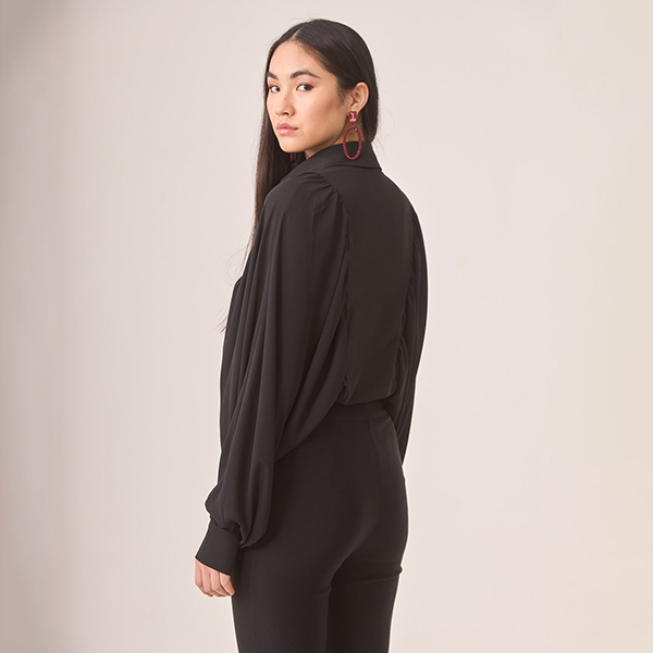 La Camisa Manga Murciélago Black con cuello de solapa y cierre delantero con botones.En tejido vaporoso con gran caída. Esta camisa es perfecta para elevar cualquier look y transformarlo de look a lookazo.