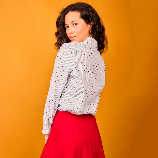¿En búsqueda y captura de la camisa PERFECTA? La tenemos. Esta camisa tiene un corte estrecho. De manga largo con cierre delantero con botones. Ideal para completar cualquier look. Y que decir de su estampado, una camisa clásica de rayas azules con pequeños corazones rojos. Esa hecha 100% en viscosa.