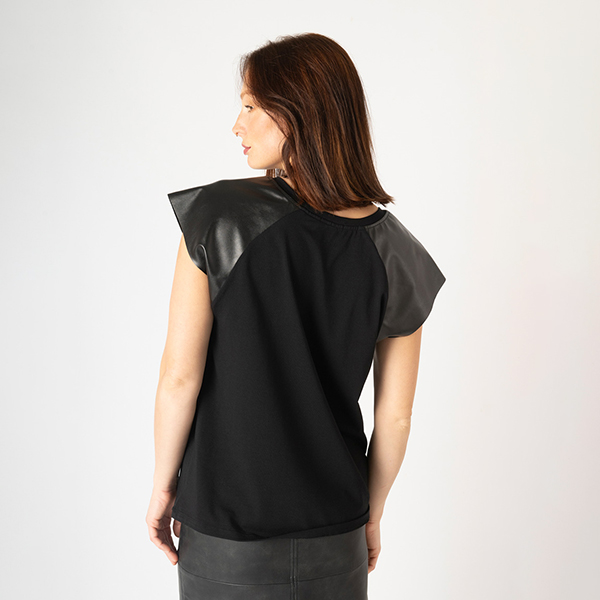 Esta camiseta en color negro con mangas de ecopiel y con detalles tachuelas tiene escote redondo. Mangas raglán y detallazo en el delantero, sobre parche ecopiel la frase bordada «Abraza la incertidumbre»  rodeada con un corazón con espinas. Porque no necesitamos planes, solo sonríe y confía el universo esta de tu parte. Confía en que lo que esta por venir puede ser cualquier cosa…..Con esta camiseta elevarás cualquier look.