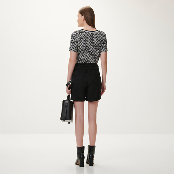 La Camiseta Matelasse está confeccionada en punto de viscosa con elastano de tacto suave y ligero, no se arruga y no decolora. Es de manga corta, escote en pico recto y estampado rotativo (por lo que puede haber variaciones en la ubicación de los elementos).