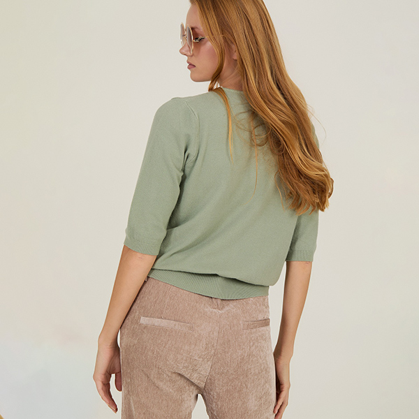Este cárdigan de punto en color verde manzana es perfecto para completar cualquier look aportando un extra de calidez. Con un corte básico y sencillo pero a la vez espectacular manga corta ligeramente abullonada, detalles de botones en el mismo tono en el delantero. Cuello en pico.