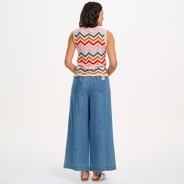 El Chaleco Rosy Rainbow Chevron sin mangas y con cuello en pico esta es una de las NOVEDADES de la marca. Perfecta para usar sobre vestidos, con faldas o camisetas. ¡El contraste perfecto para combinar con su fabuloso estampado de Zig Zag!.