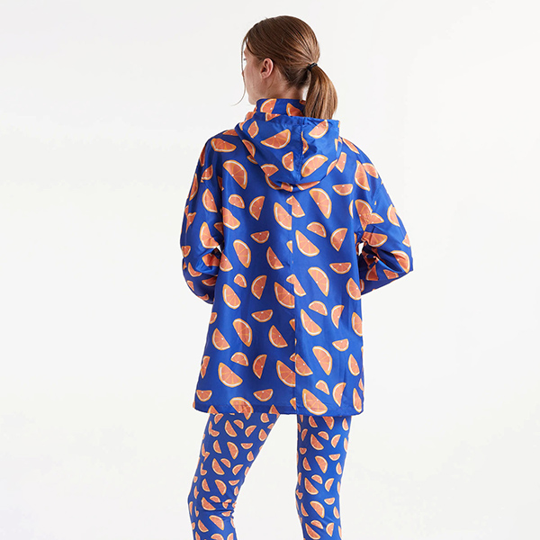 Esta Chaqueta deportiva con estampado de bonitos pomelos sobre un fondo azul. De manga larga, con capucha que puedes ajustar a tu necesidad. Cierre frontal con cremallera. Bolsillos en los laterales y bajo ajustable. Si te encanta tanto como a nosotras esta chaqueta no dejes de ver el resto de la colección donde encontrarás leggings y chaquetas a juego.