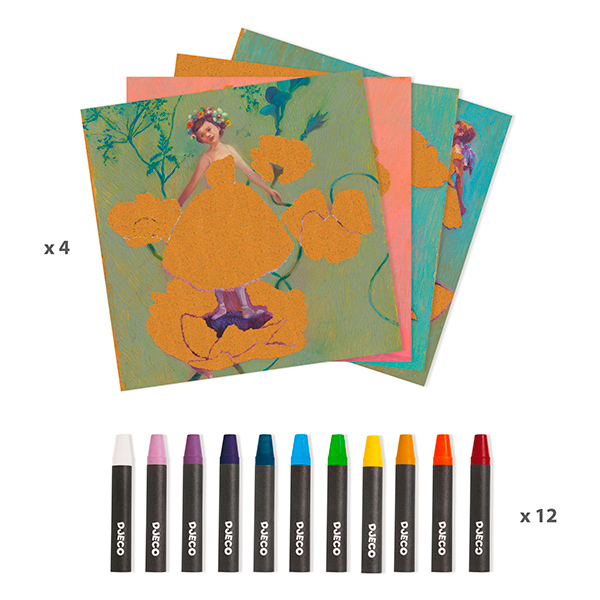 La Bailarina Edgar Degas está inspirada en el impresionista Edgar Degas, la artista Nathalie Novi ha creado esta actividad de pintura con ceras. En ella, se agregan colores gradualmente, superponiéndolas para crear sombras y luz en los pliegues y las telas.