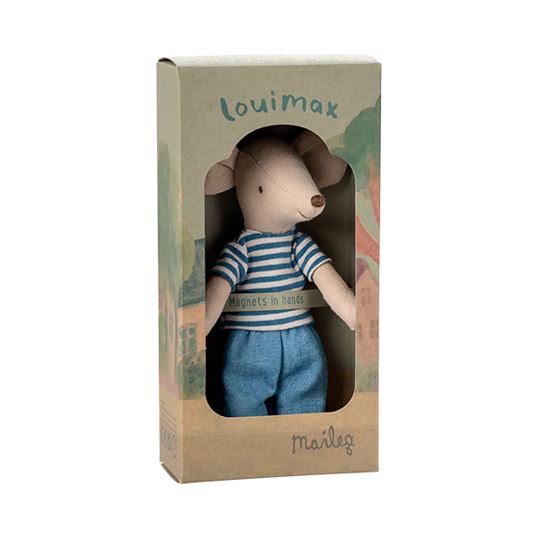 El LouiMax Ratón Hermano Mayor han llegado para quedarse! Porque sabemos que son un MUST para grandes y pequeños. Este ratón viene listo para una aventura. Vestido con camiseta de rayas y pantalón vaquero. Tiene imanes en las manos  para que pueda interactuar con los accesorios de la colección y viene en una caja decorativa muy bonita.