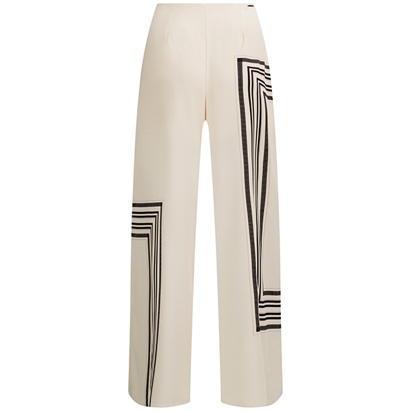 El Pantalón Estampado Geo con corte fluido y tiro alto con detalle de diseño en el delantero y si estos pantalones te gustan tanto como a nosotras busca la camisa a juego que completa ese espectacular pantalón. Cierre con cremallera invisible lateral. Lo puedes combinar fácilmente con las blusas de la colección.