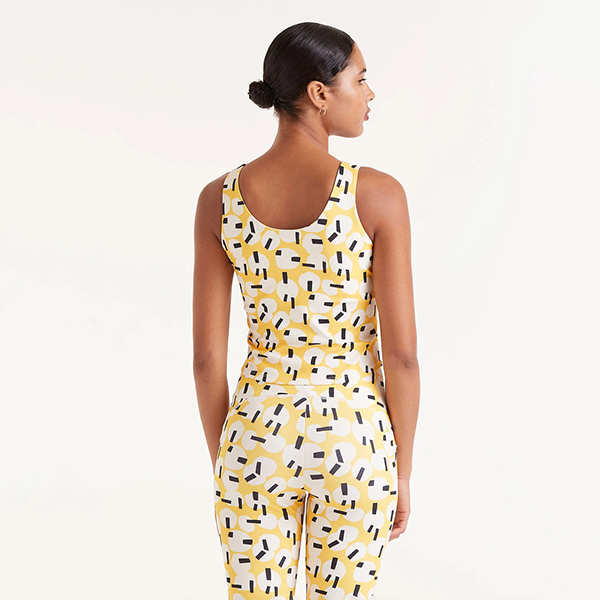Este top está hecho en tejido elástico con estampado de bonitos dibujos geométricos sobre un fondo amarillo. Con cuello redondo y tirante amplio. De corte ajustado y con semi forro. Si este top te encanta tanto como a nosotras no dejes de ver el resto de la colección donde encontrarás leggings y chaquetas a juego.