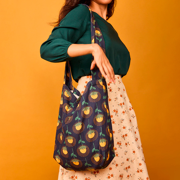 Esta tote de algodón es uno de esos accesorios que cumple la máxima de bonito y práctico. Bolso de algodón con bolsillo interior  con cierre con clip que hace que resulte muy cómodo y fácil de utilizar. Unos bonitos dibujos de flores amarillas sobre fondo negro.