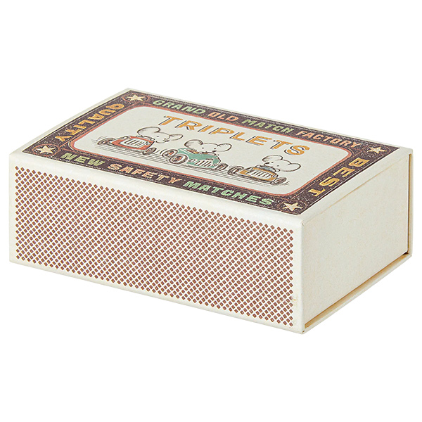 ¡Los ratoncitos han llegado para quedarse! Porque sabemos que son un MUST para grandes y pequeños. Estos bebés trillizos ¡son un clásico! Duermen seguros en su saco de dormir, uno al lado del otro, metidos en la cama de la caja de cerillas.