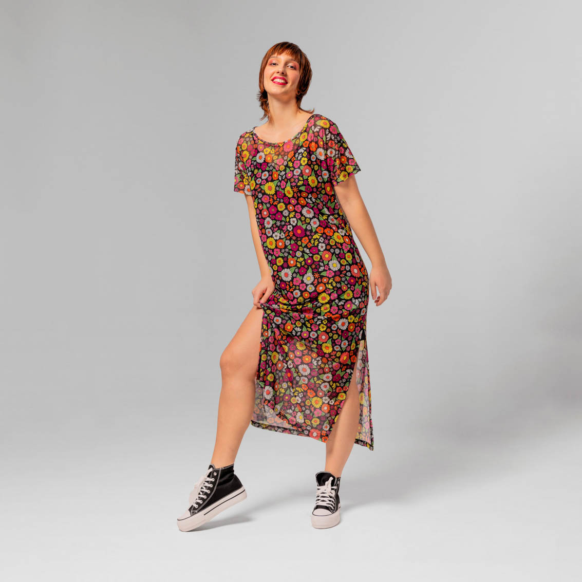 El vestido pertenece a la colección Floreciendo: Una colección con muy buenas vibras, porque hemos decidido ser happy y be hippy, y como las flores del campo estamos listas para florecer. Y como nos gusta a nosotr@s los estampado de Lolina. El vestido de manga corta muy cómodo y fácil de llevar. En tejido transparente de tul con cuello redondo y corte holgado sienta de maravilla. Además incluye un vestido lencero para completar el look.