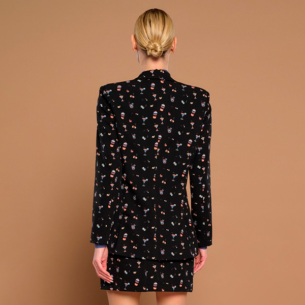 Blazer con cierre delantero con botón, de corte entallado que te va a encantar.Además tiene bolsillos en el delantero con solapa, manga larga con abertura y botón . Y que decir de su estampado, lista para tomar el coctel.